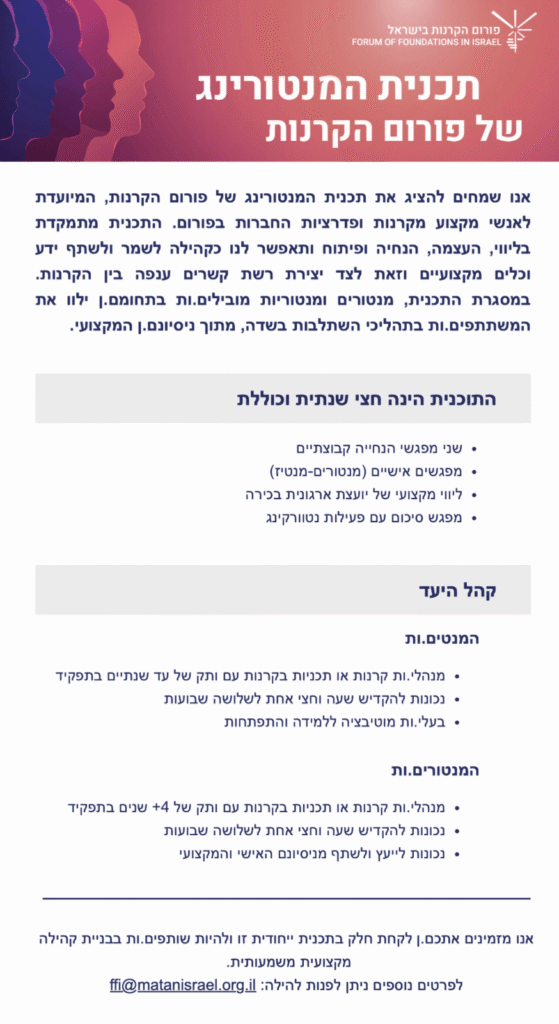 The post חוברת למנטור.ית appeared first on Forum of Foundations in Israel.